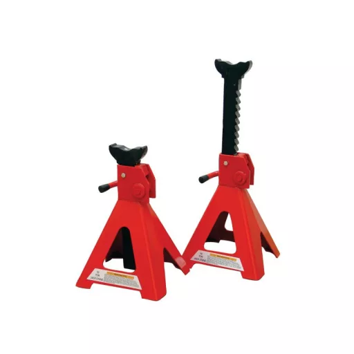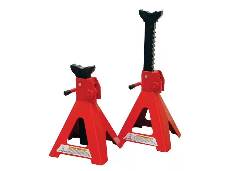 Der verstellbare Stützfuß hat eine Spindel für genaue Höhenverstellung und Doppelverriegelung. Massiver Stahlgriff. Große Abstellfläche, robustes Gestell. Gusseiserner Halter. Belastbarkeit 12 t, min. Höhe 465 mm, max. Höhe 715 mm.