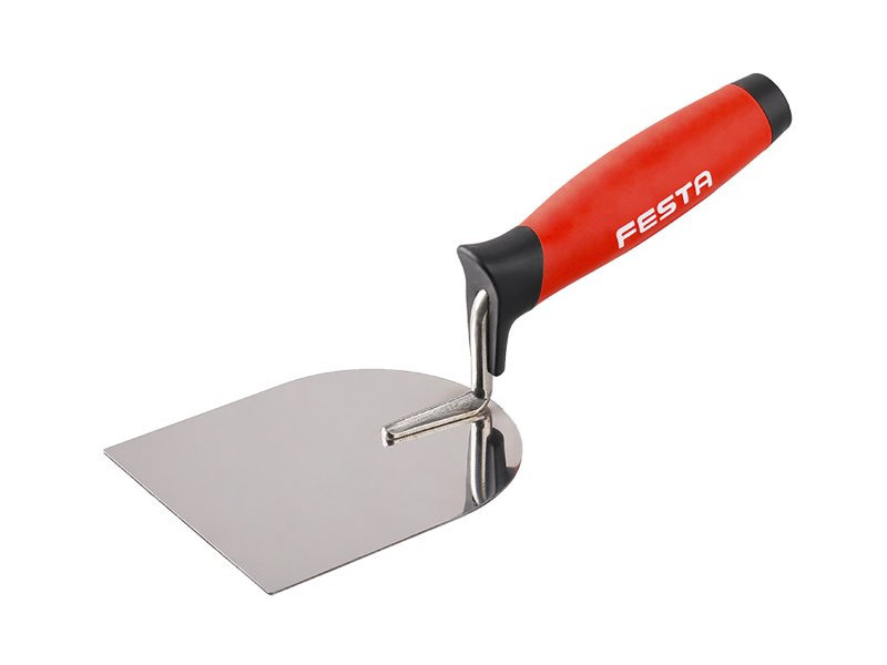 Radírozó kanál rozsdamentes acél FESTA 100 mm gumi nyéllel. Minőségi rozsdamentes acél. Az építőiparban befejező munkákhoz használják.