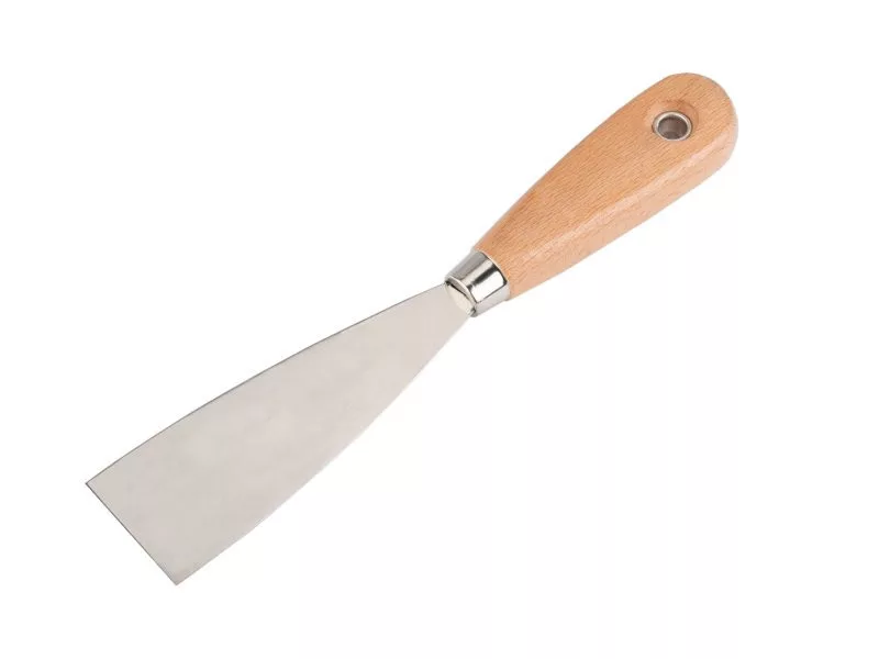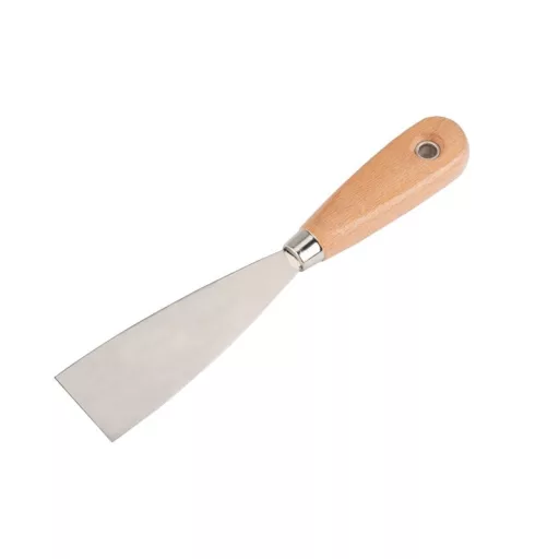 FESTA rozsdamentes acél ék spatula 40 mm fa nyéllel. Használható vakolásnál, festésnél, festésnél, karosszériajavításnál vagy művészi alkotásnál, stb. Alkalmas vakolat vagy egyéb tömítőanyag felhordására vagy régi festékek és bevonatok eltávolítására.