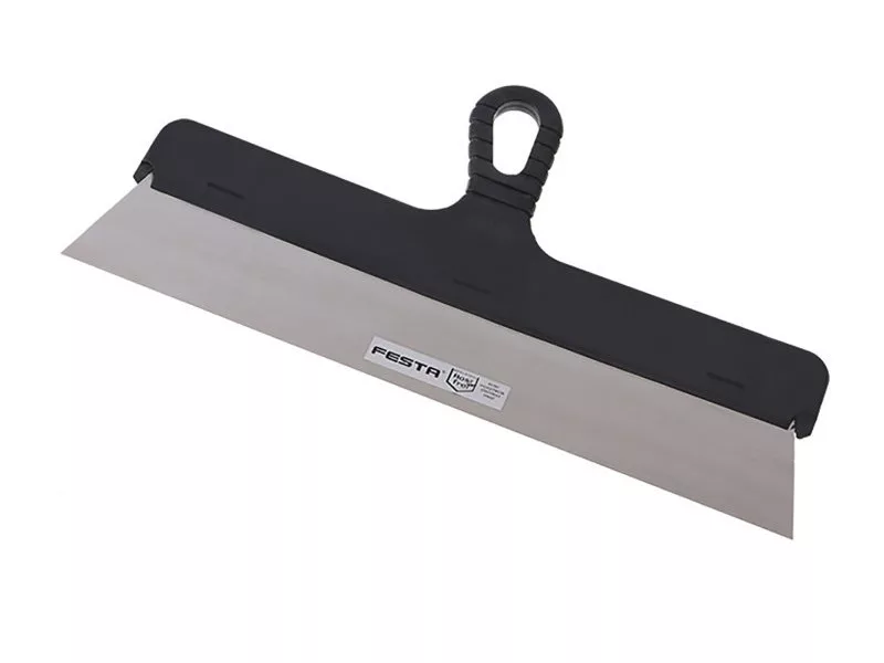 Spatula homlokzat rozsdamentes acél 400 mm FESTA műanyag nyéllel. Használható vakolásnál, festésnél, festésnél, karosszériajavításnál vagy művészi alkotásnál, stb. Alkalmas vakolat vagy egyéb tömítőanyag felhordására vagy régi festékek és bevonatok eltávolítására.