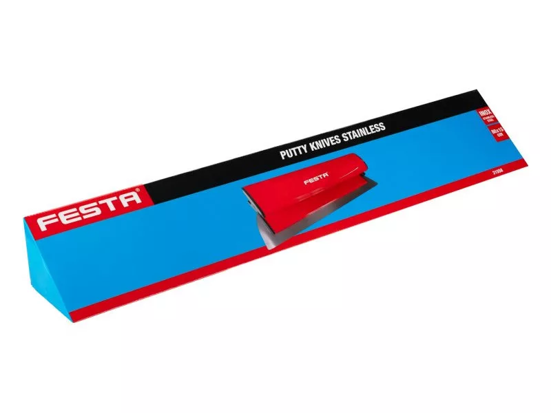 • Rostfreie Stahlklinge mit abgerundeten Ecken für gleichmäßiges Auftragen und Glätten des Spachtels