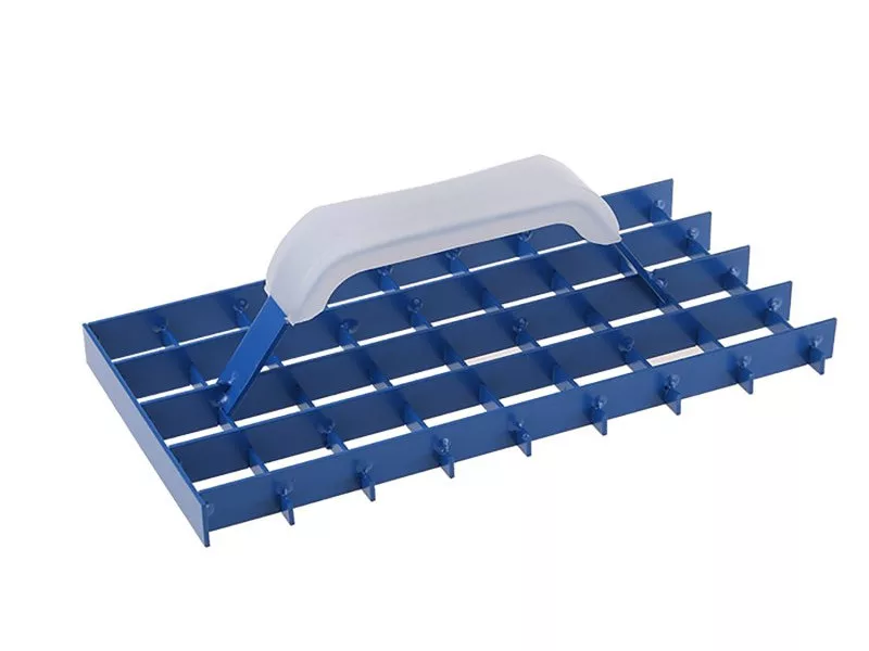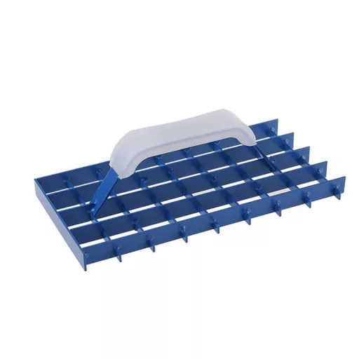A vakolathoz való 280x150 mm-es rácskaparó műanyag bevonatú fogantyúval rendelkezik. Anyaga - rácsszerű formára hajtogatott vasprofil, 2 mm vastag acélszalaglemezből készül.