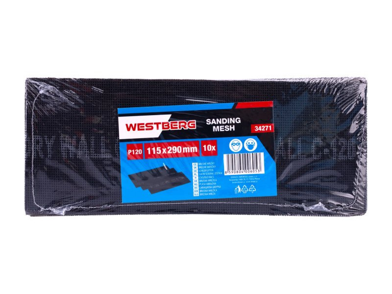 Csiszolőrács 115 x 290 mm, szemcse 120, 10 db/készlet. Az őrlőrács úgy van megépítve, hogy a szilícium-karbid csiszolószemcsék gyantával vannak az üvegszálas hátlaphoz kötve. A rácsszerkezet előnye a hagyományos csiszolópapírokkal szemben, hogy nem tömődik el a csiszolt anyaggal.