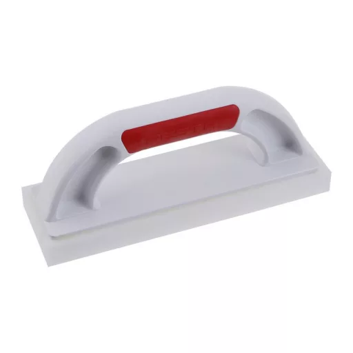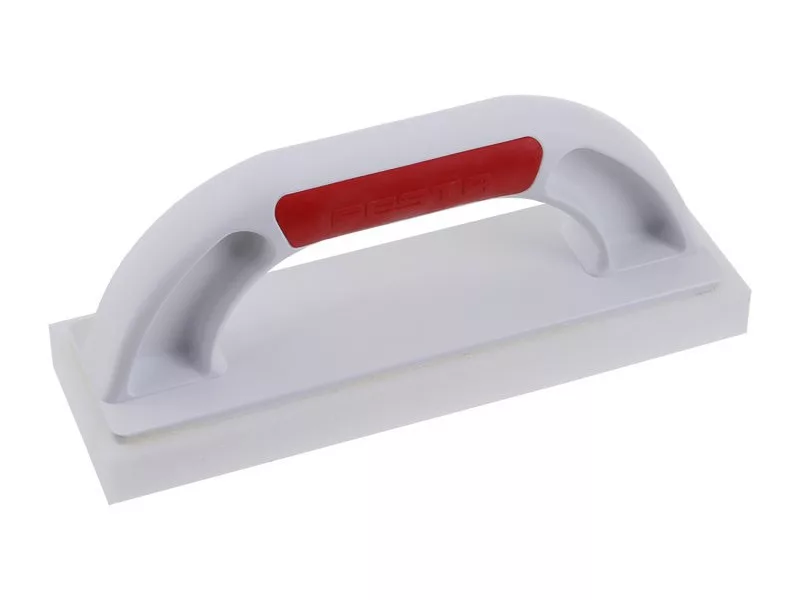 Finomhabos FESTA simító, jó minőségű műanyag talp ergonomikus nyéllel, mérete: 220 x 70 x 10 mm, felhasználása: laza homok eltávolítására, finom stukkóhoz (kerashtuk), csempék lemosására fugázás után.