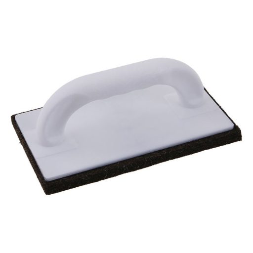 FESTA simító fekete filccel, jó minőségű műanyag talp ergonomikus nyéllel, méret: 220 x 130 x 10 mm, felhasználás: finomvakolat összehasonlítására, nagyobb vakolatszemcsékhez.