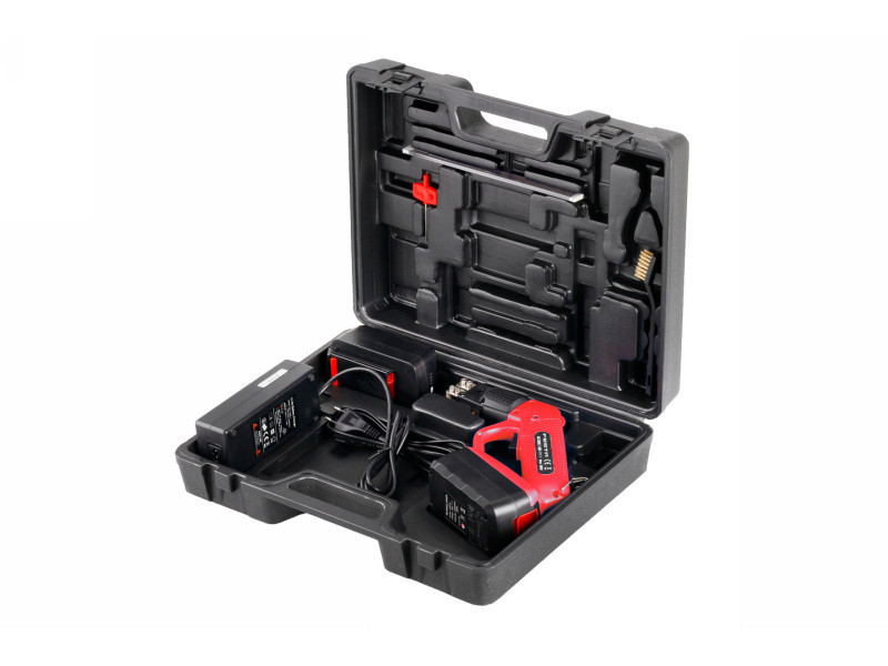 • akkus polisztirol vágó műanyag tokban, 2 akkumulátorral, töltővel és összeszerelési és tisztítótartozékokkal