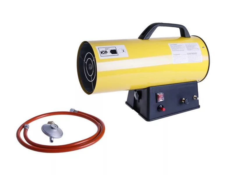 A gázfűtők azonnal nagy mennyiségű hőt képesek előállítani. Ezeknek az eszközöknek a működése nagyon jövedelmező, hatékony és megbízható. A hordozható gázfűtők jól szellőző helyekre alkalmasak, mint például gyártócsarnokok, raktárak és építkezések. Ez a gázfűtés propán-butánnal működik. Célja a tüzelőanyag energetikai értékének teljes kihasználása a levegő és a füstgázok közötti hőcsere miatt. Ez a termék megfelel a CE EN 1596:1998 + A1:2004 irányelvnek. Típus ZSG 151, Gáz G30-I3B/P, Gáznyomás 0,7bar, Névleges feszültség 230V 50Hz, Motor teljesítmény 25W, Max. gázfogyasztás 1,11 Kg/h, Max. hőteljesítmény 15KW, max. forró levegő mennyisége 300m3/h. A csomag tartalmazza: nyomásszabályozó, tömlő 1,5 m-es végekkel.