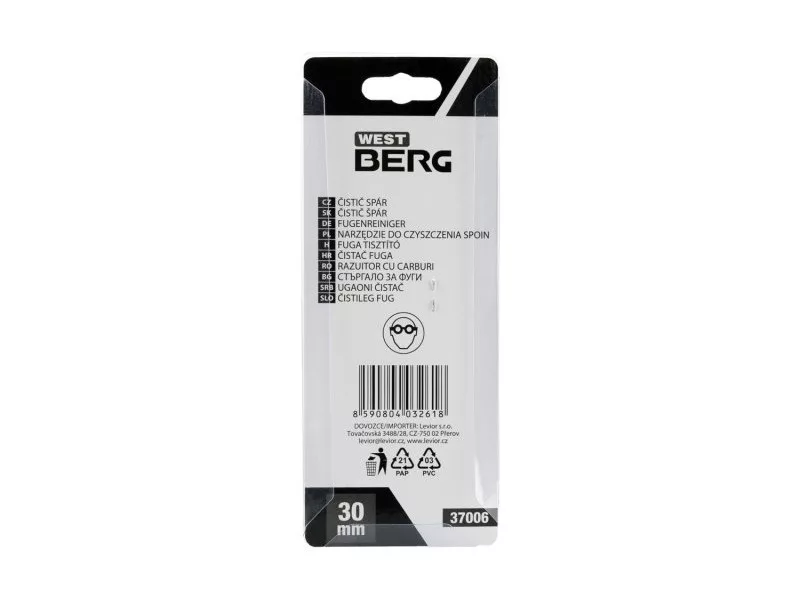 Fugatisztító, méret: a csiszolólap hossza 30 mm, a lemez csiszoló része - szintetikus gyémánt, felhasználás: csempék és térkövek hézagainak tisztítására fugázás előtt, vagy régi fugázóanyag eltávolításakor, műanyag ergonomikus fogantyú a kényelmes és szilárdság érdekében tartás, a lemez masszív csavarral rögzítve - kioldó még erős mechanikai igénybevételnek is ellenáll, tartalék planchet a csomagban - rendelési szám 37008, csomag: euro lyukkal ellátott kártya.