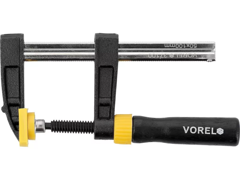 Stolarski 50x100mm jaws made of special cast iron, stable tin -tin steel rail and pressure screw with a swinging pressure plate - guarantee effective, effective operation. Wooden lacquered handle reinforced with a metal cap
