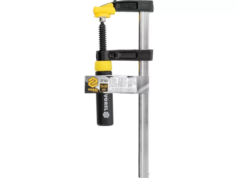 Coal squeeze 50x200mm. Jaws made of special cast iron, stable tinned steel rail and pressure screw with a swinging pressure plate - guarantee effective, effective operation. Wooden lacquered handle reinforced with a metal tap for effective tightening of material during assembly, processing, gluing.