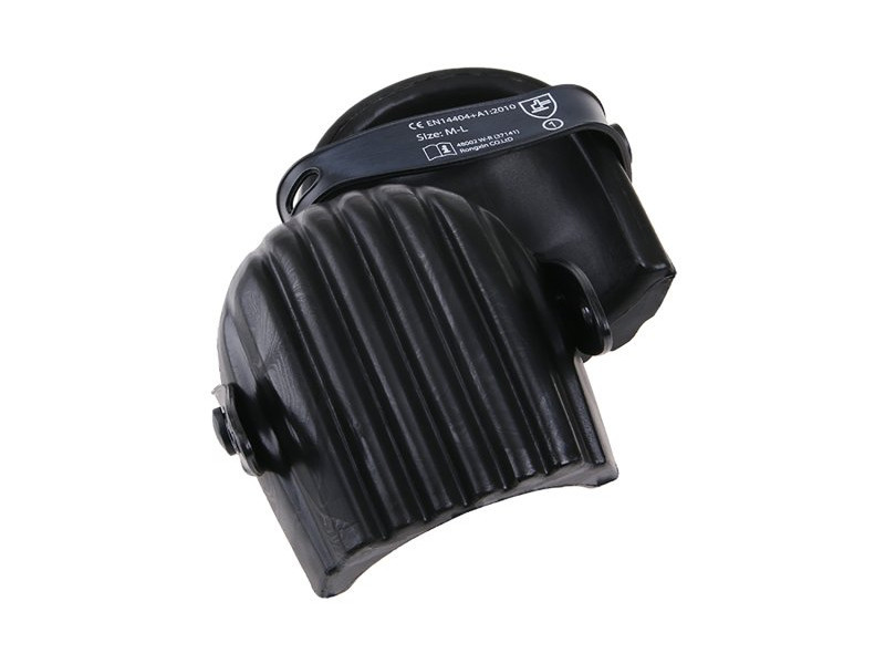 Knieschutz gegen Prellungen und Kälte bei der Arbeit, mit variabler Befestigungsmöglichkeit durch perforierten Gürtel.