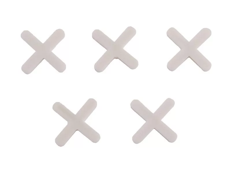 Műanyag keresztek 4 mm, mennyiség: 100 db, felhasználás: azonos hézagszélesség és hézagvonal biztosítására csempézésnél és csempézésnél csomagolás: eurolyukkal ellátott buborékfólia.