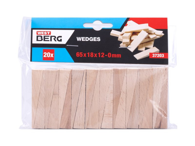 Fa ékek (bükk, tölgy), méret: 65 x 18 x 0-12 mm, mennyiség: 20 db, felhasználás: ablakok, ajtókeretek és fémszerkezetek beépítéséhez, csomagolás: eurólyukkal ellátott buborékfólia.