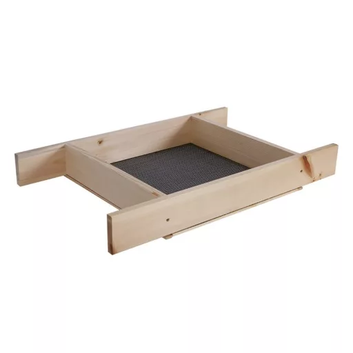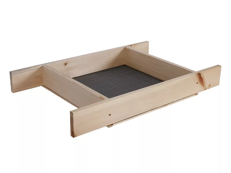 Szita stukkóvakolatok és egyebek szitálásához, fa keret, 4 mm-es lyukbőségű szita.