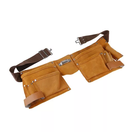 Szerszámszíj, 11 zseb, bőr/nylon, felhasználás: szerszámok és tartozékok tárolására, megkönnyíti a kezelést és a munkát - könnyű elrakni a szerszámokat és visszafogni, tárolni az anyagot - szögek, csavarok..., kényelmes széles állítható öv.