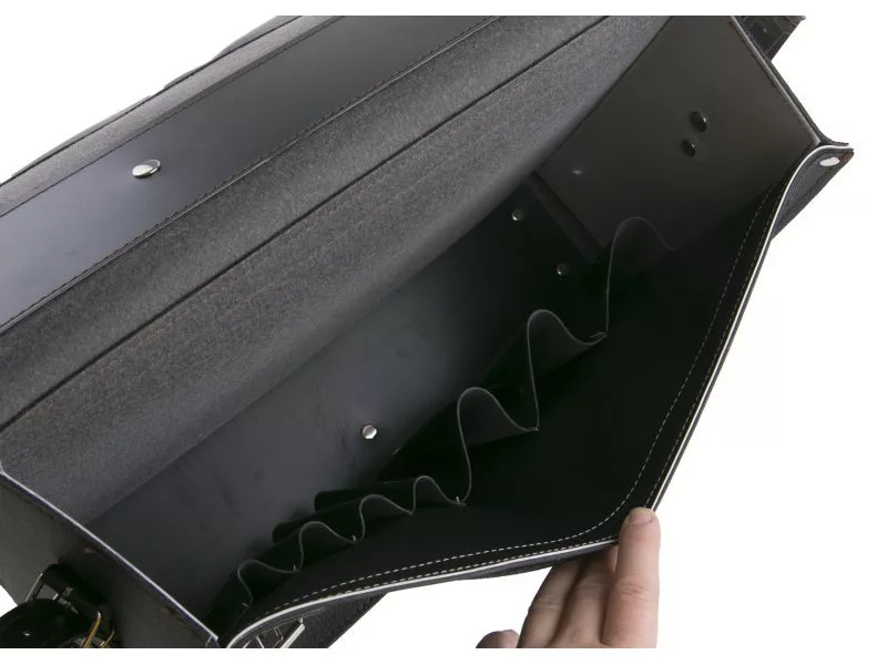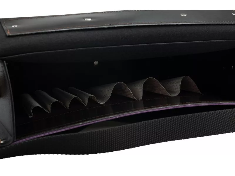 Műbőrből készült, közepesen nehéz szerszámokhoz alkalmas villanyszerelő táska, ahol a rekeszekbe csúsztathatod a szerszámokat. A táska speciális Amann PES cérnával van varrva, a cérna teherbírása 12 kiló, a varratok a szabad helyeken még szegecselve vannak. Jellemzők: fogantyú, vállpánt, acél háterősítés. Belső felépítés: 1 lapos zseb iratoknak, rekeszek csavarhúzóknak és kis szerszámoknak. Erősítések: a táska alja, háta, oldalai. Fő anyaga: szintetikus bőr.
