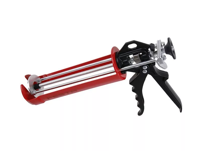 Extrudáló pisztoly vegyszerhorgonyokhoz, speciális alkalmazási pisztoly vegyszerhorgonyok extrudálásához 380 ml-es kiszerelésben, kiváló minőségű megerősített acél toló- és csúszómechanizmussal, tartós fém ergonomikus fogantyúval.