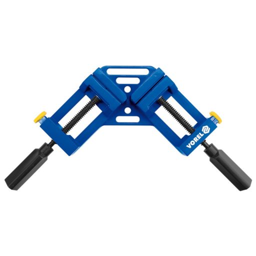 Angle carpentry 65 x 70mm specialized carpentry squeezed for the installation of angles. Most often used when gluing frames. A stable aluminum design with two pressure screws allows you to fit and press glued elements at an angle of 90 degrees. Additional buttons for quick shift without the thread.