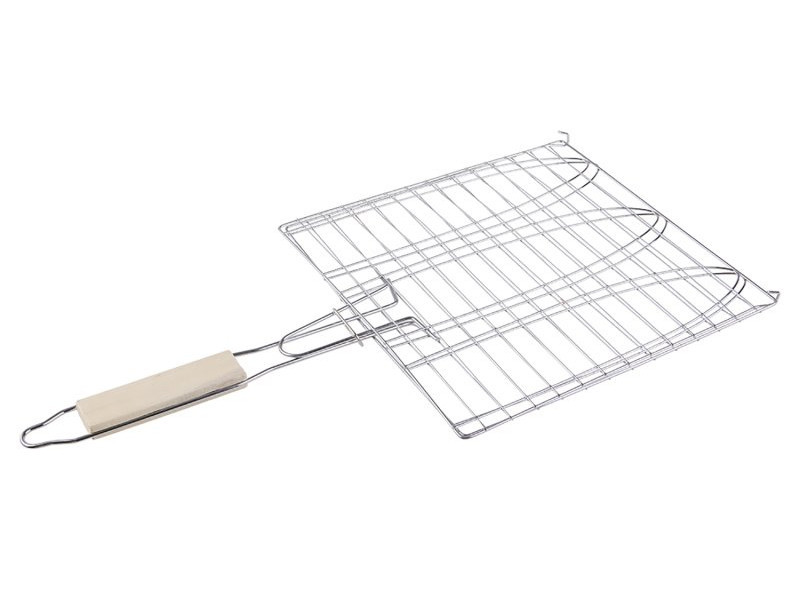 Grillező rács halakhoz, felhasználása: grillezett hal elkészítéséhez ideális, a rács kinyitható, hal vagy zöldség adagokat behelyezünk, lezárjuk, hogy a készülő étel könnyen és biztonságosan kezelhető legyen.