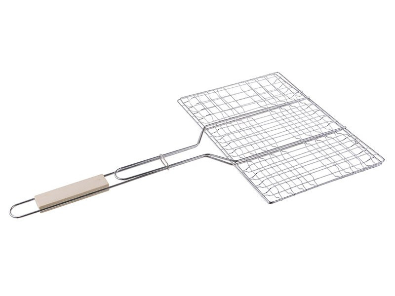 Forgatható grillrács, felhasználása: ideális hús, zöldség és egyéb grillkülönlegességek grillezésére, grillrács a két rács felépítésének köszönhetően, amelyek közé a grill ételt rakjuk - lezárjuk, biztosítótűvel rögzítjük és ráhelyezzük a grill - rácsot, és könnyedén megforgathatunk egyszerre több adagot és így könnyen elérjük az étel megfelelő hőkészítési szintjét.