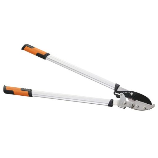 Ágvágó olló - racsnis, hossz 750 mm, racsnis - racsnis mechanizmus lehetővé teszi, hogy kevesebb erőt használjon a munkavégzés során, klasszikus ollók kemény és száraz ágakhoz 40 mm-ig, precízen köszörült kés tapadásmentes bevonattal, speciális forma - penge geometriája az optimális erőátvitel - kivételesen tiszta és sima vágás, a fix pofa fogazott része megakadályozza az ág elfordulását és elcsúszását vágás közben, a rugalmas műanyag ütköző védi a pengét, elliptikus formájú könnyű alumínium karok, ergonomikusan kialakított fogantyúk vágás közben csúszó anyagok garantálják a kényelmes és biztonságos munkát.