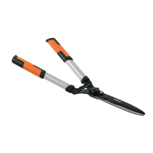 Sövényolló - hullámos penge, kiváló minőségű anyagok és precíz megmunkálás, hullámos penge megakadályozza, hogy még az apró gallyakat is kicsússzák vágáskor, alumínium fogantyúk elliptikus profillal és műanyag ütközővel, ergonomikusan kialakított nyél garantálja a kényelmes munkavégzést és a biztos fogást, használata: sövények, bokrok, fák nyírása.