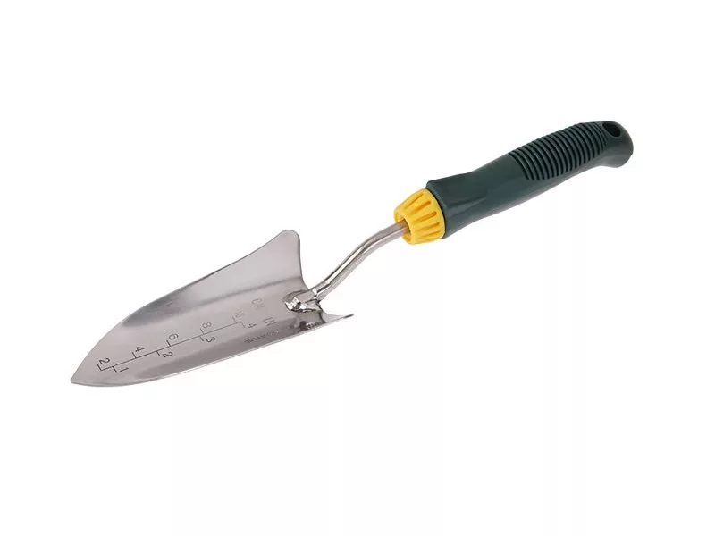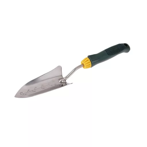 Kerti ásó ROSA - rozsdamentes acél, keskeny, praktikus nyomtáv a megfelelő ültetési mélység egyszerű eléréséhez, minőségi anyag és kidolgozás, ergonomikus műanyag nyél, hossza 35 cm, felhasználás: minden kerti munkához, szobanövényekkel való munkához... , csomagolás: buborékfólia Eurolyukkal.