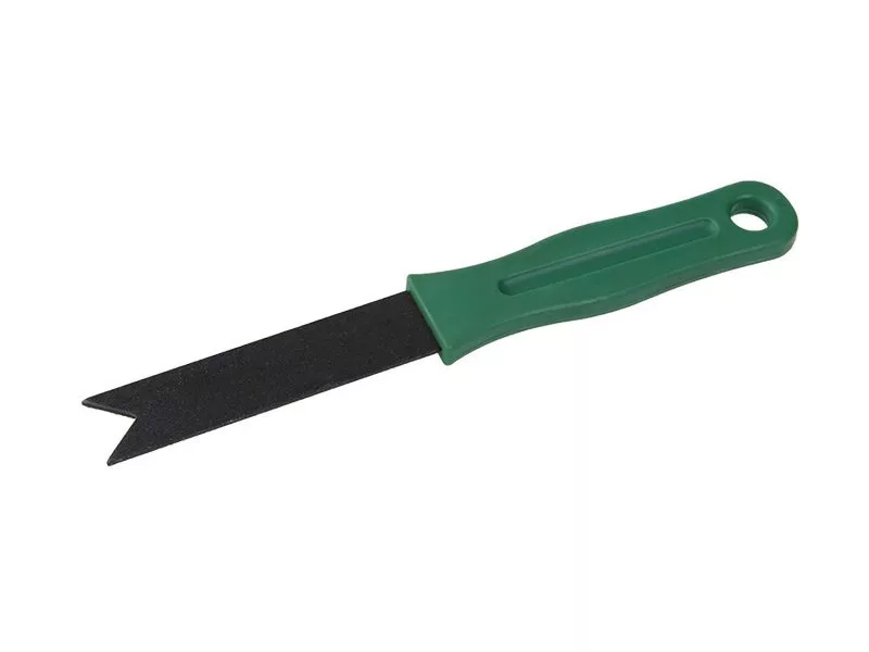 Das Unkrautstecher-Messer wurde entwickelt, um Unkraut aus dem Boden zu entfernen. Das Unkrautmesser besteht aus Stahl, mit einem Kunststoffgriff und einer Aufhängeöse.