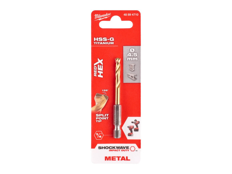 MILWAUKEE Schlangenbohrer 4,5 x 76/29 mm HSS-G TiN, Red HEX – Shockwave™