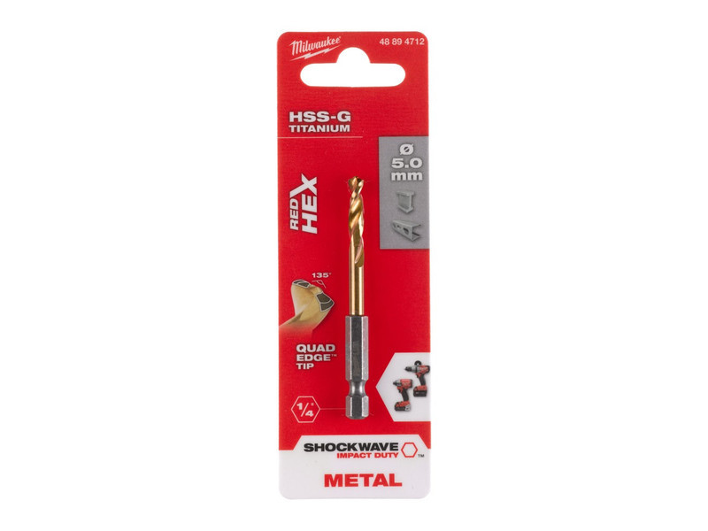 MILWAUKEE Schlangenbohrer 5,0 x 80/31 mm HSS-G TiN, Red HEX – Shockwave™