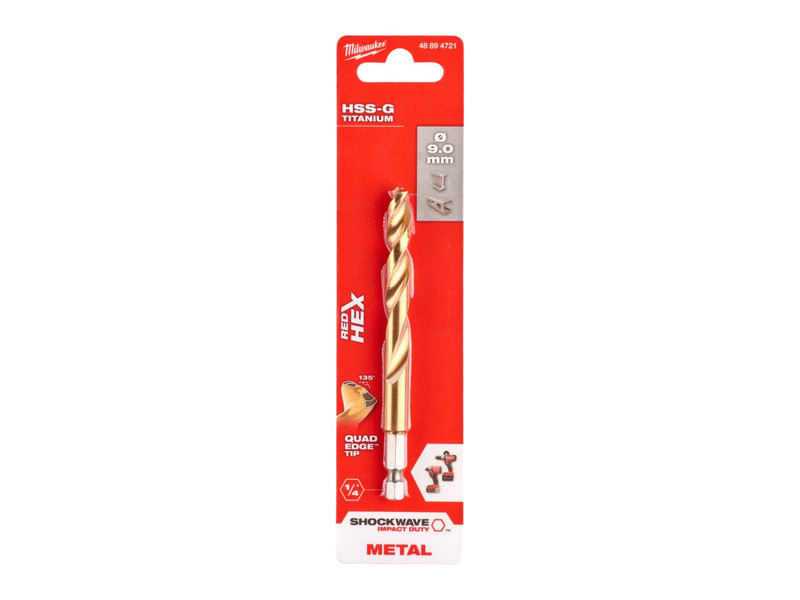 MILWAUKEE Schlangenbohrer 9,0 x 117/73 mm HSS-G TiN, Red HEX – Shockwave™