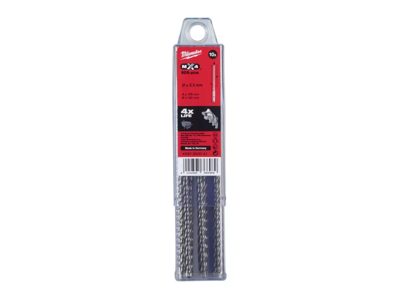 MILWAUKEE Gesteinsbohrer 5,5 x 165/100 mm vierschneidig SDS-Plus (10 Stück)