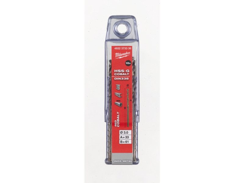 MILWAUKEE Bohrer 3,0 x 61/33 mm HSS-G Co DIN 338 Red Cobalt (10 Stück)