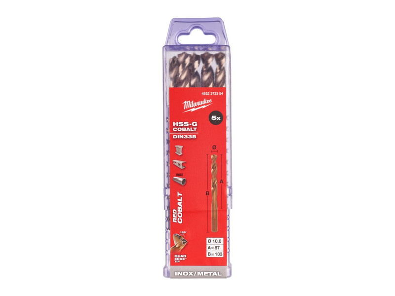 MILWAUKEE Schraubenbohrer 10,0 x 133/87 mm HSS-G Co DIN 338 Red Cobalt (5 Stück)