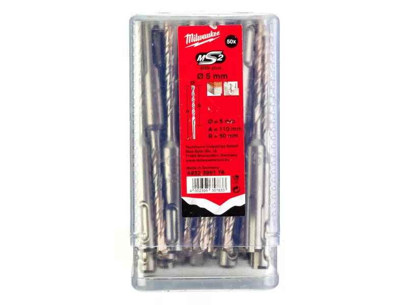 MILWAUKEE Gesteinsbohrer 5,0 x 110/50 mm zweischneidig SDS-Plus (50 Stück)