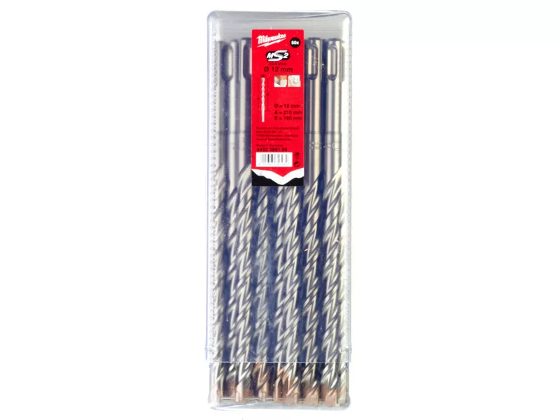 MILWAUKEE Gesteinsbohrer 12 x 210/160 mm zweischneidig SDS-Plus (50 Stück)
