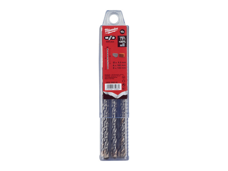 MILWAUKEE Gesteinsbohrer 6,5 x 160/100 mm zweischneidig SDS-Plus (10 Stück)