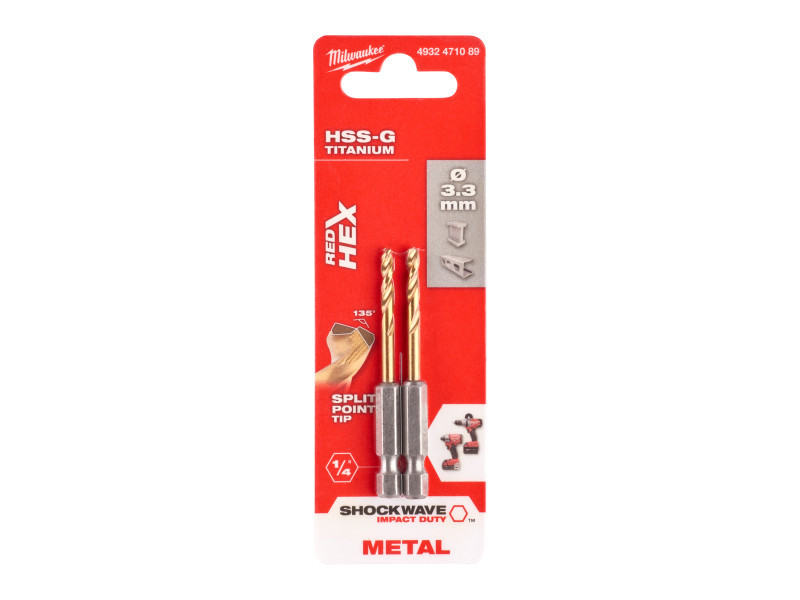 MILWAUKEE Bohrer 3,3 x 67/24 mm HSS-G TiN, Red HEX – Shockwave™ (2 Stück)