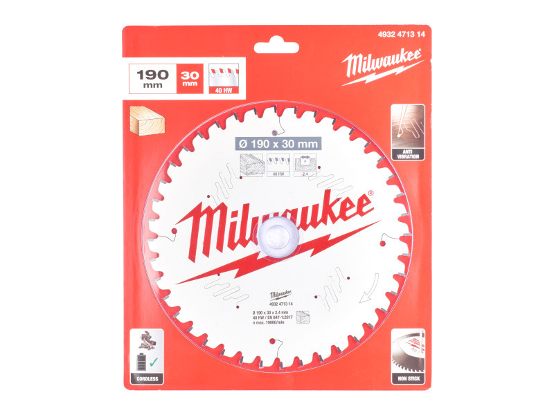 MILWAUKEE Sägeblatt für Holz 190 x 30 x 2,4 mm /40T ATB NEG MILWAUKEE Sägeblatt für Holz 190 x 30 x 2,4 mm /40T ATB NEG