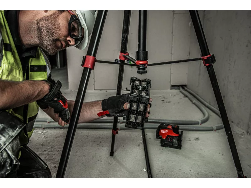 • Das MILWAUKEE® Dreibein-Laserstativ mit ¼″ Befestigungsgewinde ist ideal zum Einstellen der Höhe der horizontalen Laserlinie oder zum Anheben des Lasers, falls erforderlich