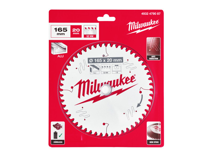 MILWAUKEE Sägeblatt für Aluminium 165 x 20 x 1,6 mm / 52T ATB
