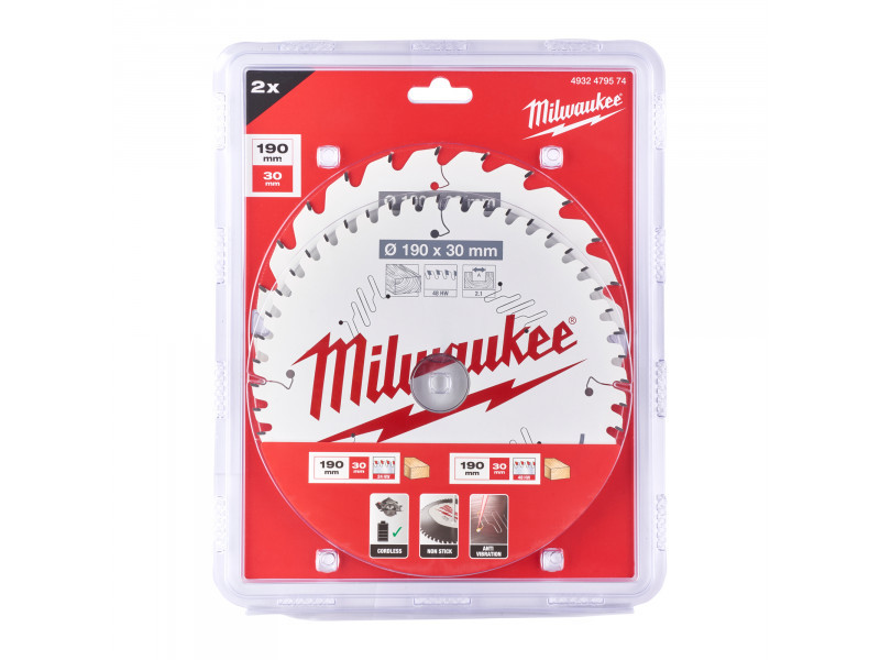 MILWAUKEE Sägeblatt-Set für Holz 190 x 30 x 1,6 mm / 24T + 48T