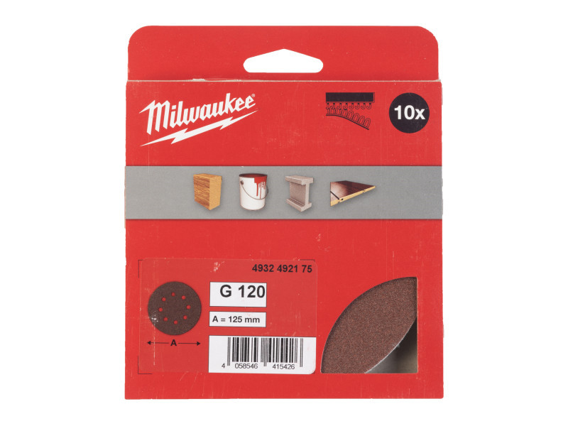 MILWAUKEE Klett-Schleifpad STD 125 mm / P120 8 Löcher (10 Stück)
