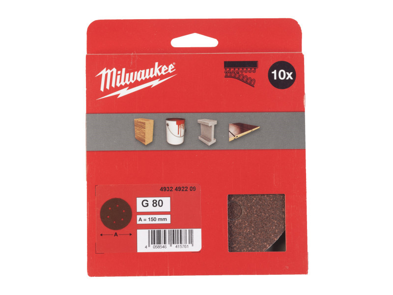 MILWAUKEE Klett-Schleifpad STD 150 mm / P80 6 Löcher (10 Stück)