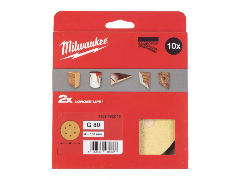 MILWAUKEE Klett-Schleifpad HP 150 mm / P80 8 Löcher (10 Stück)