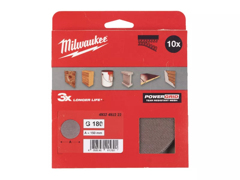 MILWAUKEE Klett-Schleifnetz PG 150 mm / P180 (10 Stück)
