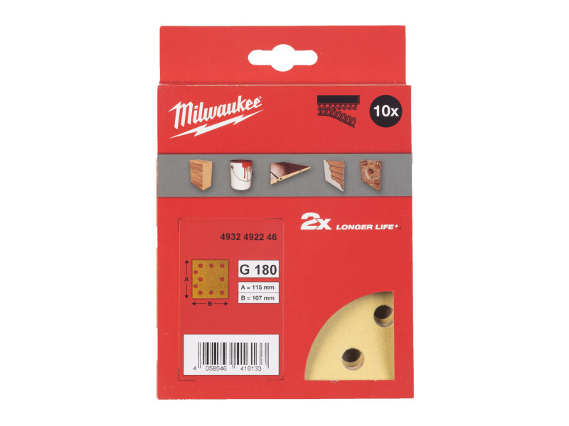 MILWAUKEE Klett-Schleifpad HP 115 x 107 mm / P180 10 Löcher (10 Stück)
