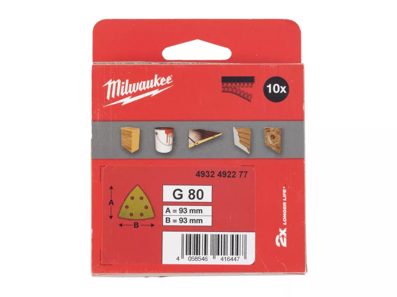MILWAUKEE Klett-Delta-Schleifpad HP 93 x 93 mm / P80 6 Löcher (10 Stück)