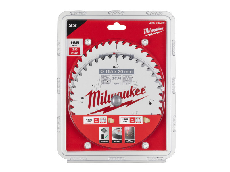 MILWAUKEE Sägeblatt für Holz 165 x 20 x 1,6 mm /40T ATB (2 Stück)