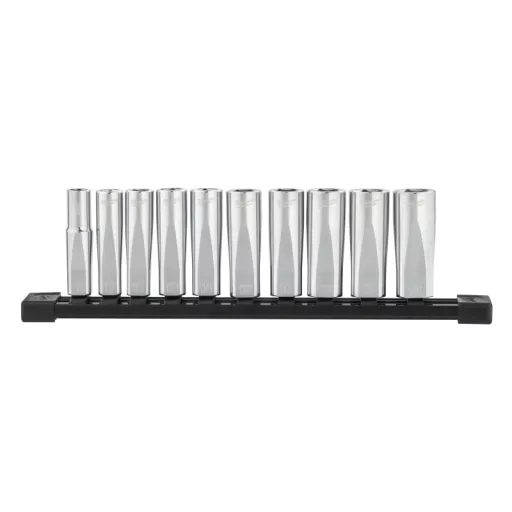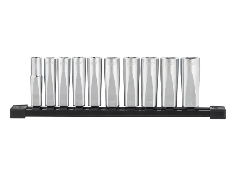 MILWAUKEE Langer Steckschlüsselsatz mit Aufbewahrungsschiene 10 Stück 3/8" 10-19 mm